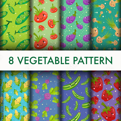 Fototapeta premium Vector seamless Vegetable pattern set.