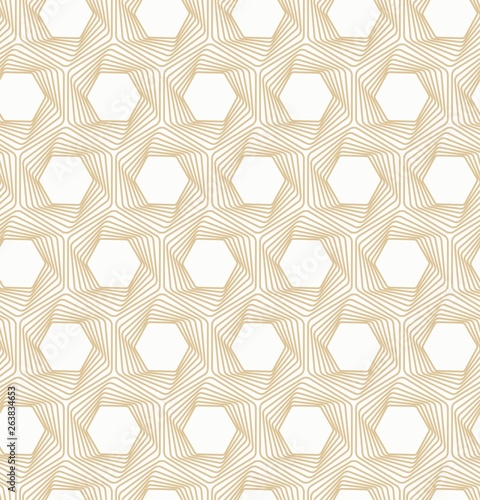 © Sergey Kolesov, Fototapeta premium Vector seamless white and gold background. Optical illusion Line pattern