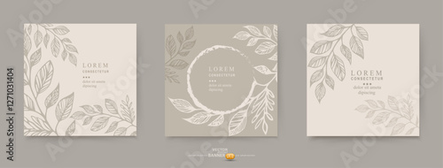 Fototapeta premium Vector set. Floral background in beige pastel colors. Template for design, advertising, postcard, invitation, label, banner.