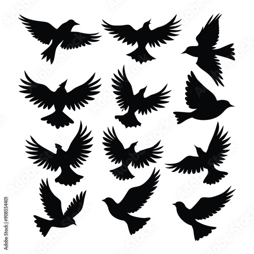 © adobeliza, Obraz premium vector set flying bird silhouette