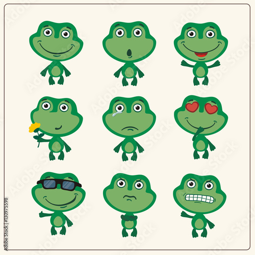 © coolpay, Obraz premium Vector set isolated cute frog. Collection funny frog in cartoon style.