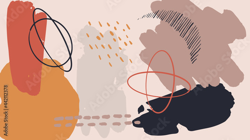 © SyahCreation, Fototapeta premium Vector set of abstract creative backgrounds in minimal trendy style with copy space for text - design templates for social media stories. Brush stroke painted background vector. Perfect design art