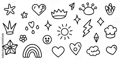 © Firdous, Naklejka premium vector set of animal icons Hand-Drawn Doodle Icons Set – Black and White Cute Sketch Clipart Collection