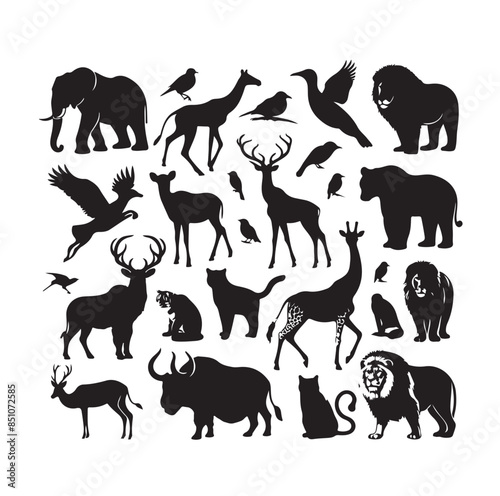 © MSTMIM, Naklejka premium vector set of animals silhouette