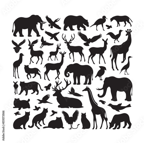 © MSTMIM, Fototapeta premium vector set of animals silhouette