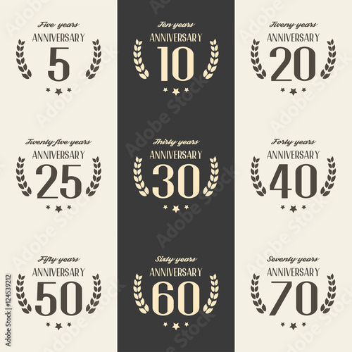 Fototapeta premium Vector set of anniversary signs, symbols. 5, 10, 20, 25, 30, 40, 50, 60, 70...