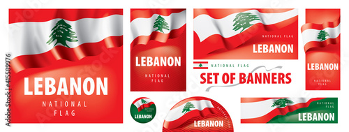 Fototapeta premium Vector set of banners with the national flag of the Lebanon