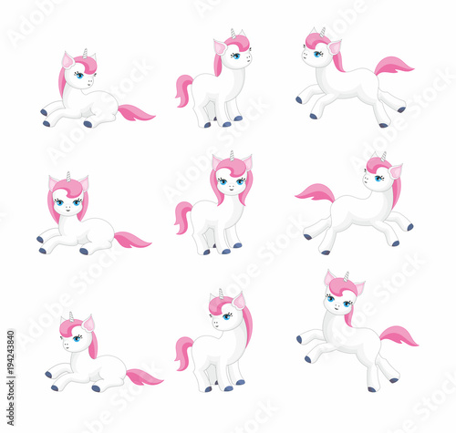 © olga_a_belova, Fototapeta premium Vector set of beautiful fantastic unicorns. Colorful illustrations isolated on a white background.