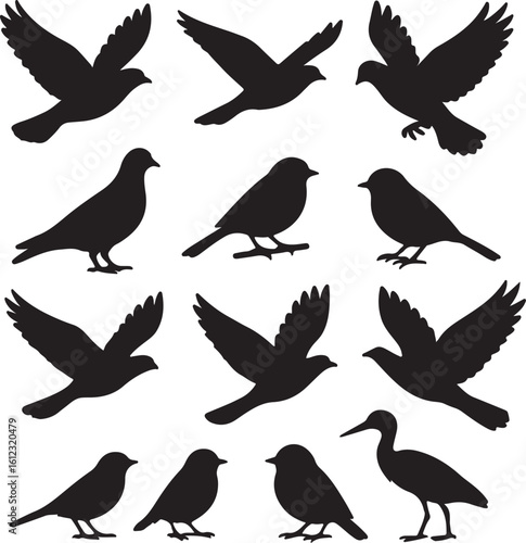 © chhaifunnahar, Fototapeta premium vector set of bird silhouettes on white background