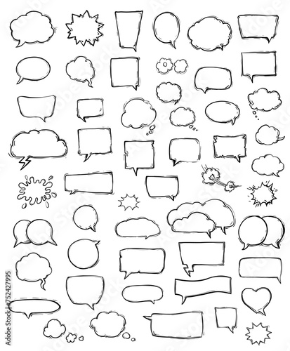 © Ghen, Fototapeta premium Vector set of black and white speech bubbles drawing on white