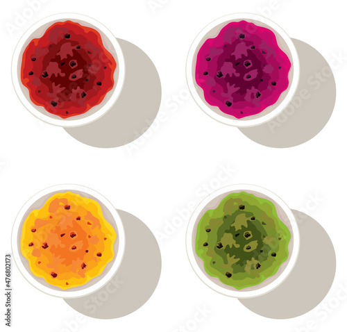 © FreeSoulProduction, Fototapeta premium vector set of bowls with fruit jam