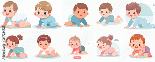 © logo, Obraz premium vector set of crawling babies