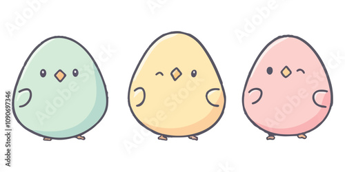 © EnelEva, Fototapeta premium Vector set of cute cartoon Easter eggs with different patterns and textures on a white background