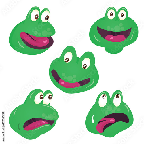 © Sasa, Fototapeta premium Vector set of cute green smilling frog faces isolated on white background