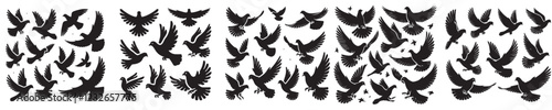 Fototapeta premium vector set of flying doves silhouettes