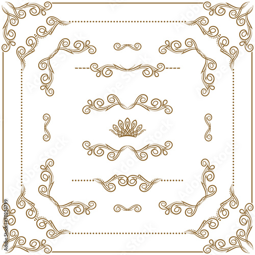 © juli_goncharova, Obraz premium Vector set of gold decorative borders, frame