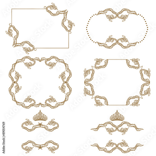 © juli_goncharova, Obraz premium Vector set of gold decorative borders, frame