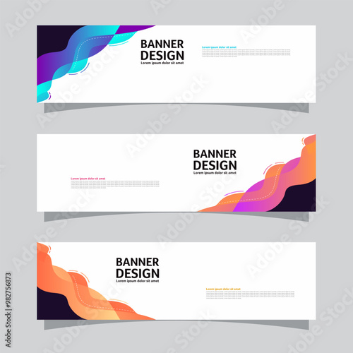 © tasehsinau, Fototapeta premium Vector set of landscape banner background design concept. Colorful background business layout template
