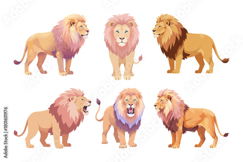 Obraz premium vector set of lion illustrations in different poses