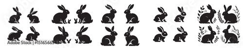 Obraz premium vector set of rabbit silhouettes
