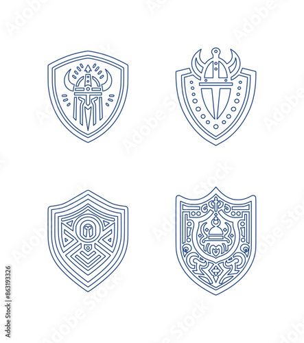 Fototapeta premium vector set of royal warrior shield (outline blue)