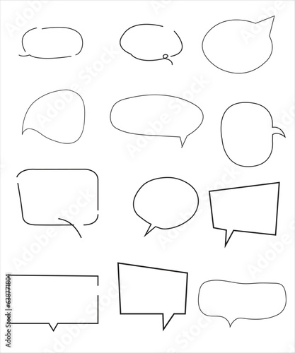 Obraz premium Vector Set of speech bubbles. Dialog box icon, message template. Doodle...