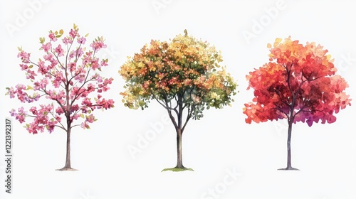 © Gro, Fototapeta premium Vector set of spring blossom tree blooming plants for landscape elevation and section eco environment concept