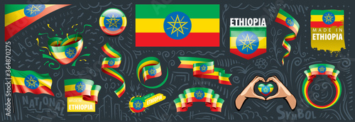 Fototapeta premium Vector set of the national flag of Ethiopia in various creative designs