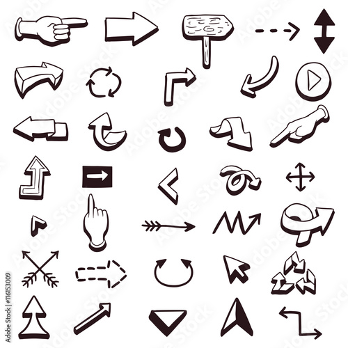 © paw, Obraz premium Vector set of various hand drawn arrows