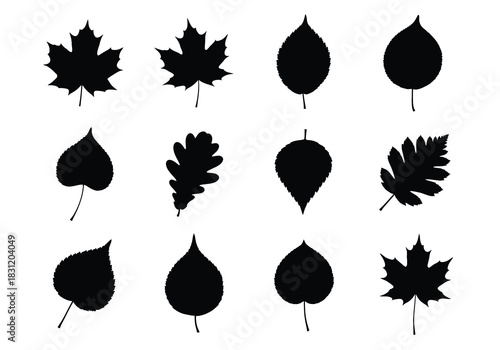 © ABDULELLAH, Obraz premium vector Set of various leaf silhouettes black flat vector design elements isolated on white background