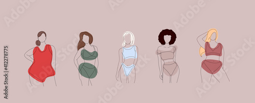 © Rita Kostor, Fototapeta premium Vector set of women in line art style with abstract shapes
