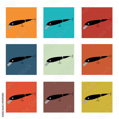 © sytnik, Obraz premium vector set symbols for fishing with baits, tail, fish, hook