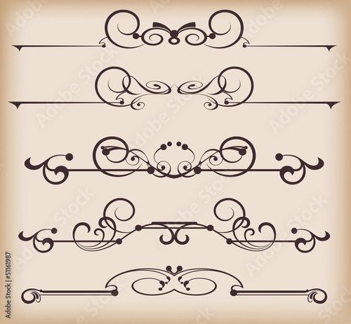 © PETR BABKIN, Fototapeta premium Vector set. Victorian Scrolls and crown. Decorative elements