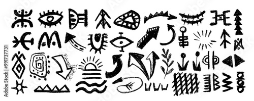 © Vitalii, Fototapeta premium Vector set with african, mexican, indian elements, tribal shapes and textile ornaments. Traditional ritual shapes, ethnic circles and borders. Mystic symbols , folk shapes