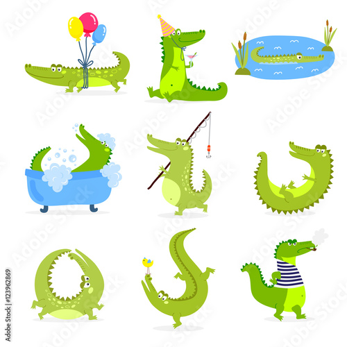 © creativeteam, Naklejka premium Vector set with cute cartoon crocodiles.