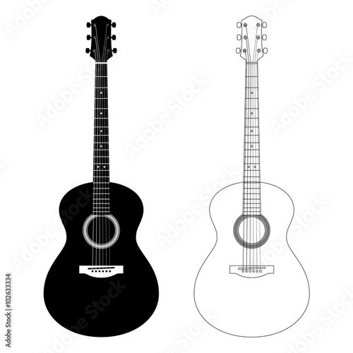 © aksenova_yu, Obraz premium Vector silhouette and contour illustration of acoustic guitars
