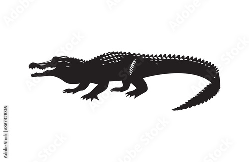 © mdabu, Fototapeta premium vector silhouette illustration of crocodile on white background