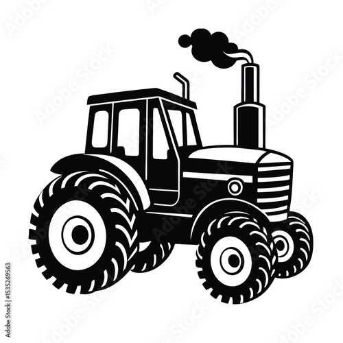 © Nila, Fototapeta premium vector silhouette illustration of Vintage Farming Tractor with Exhaust Smoke Silhouette