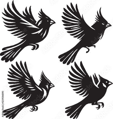 Fototapeta premium "Vector Silhouette Illustrations of Cardinals in Flight"