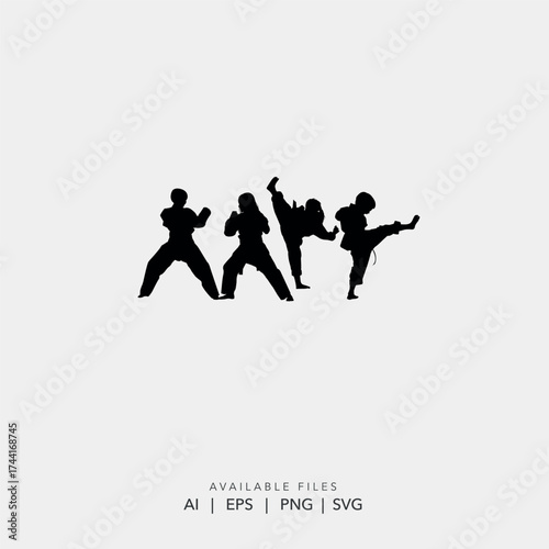© Aurix_Sol, Naklejka premium Vector silhouette logo of multiple martial artists training, Self-defense group training