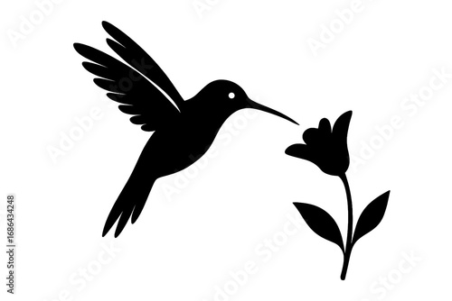 Fototapeta premium "Vector silhouette of a hummingbird hovering near flower, minimalist flat...