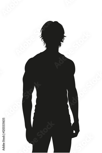 © Chandet, Fototapeta premium vector silhouette of a man with long hair and a muscular athletic body. on the white background