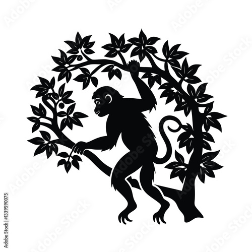 © Shah Md prince, Fototapeta premium vector silhouette of a monkey with a tree