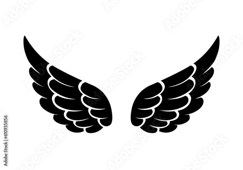 © RIko Purnomo, Obraz premium Vector silhouette of angel wings logo