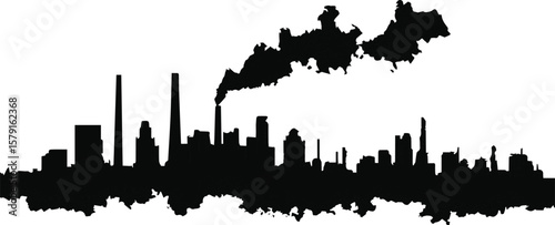 Obraz premium Vector silhouette of city skyline with skyscrapers and buildings in urban downtown landscape