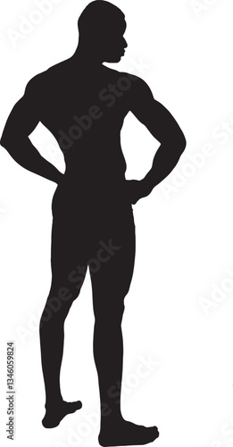 Fototapeta premium vector; silhouette of rear view of a standing muscular man arms akimbo