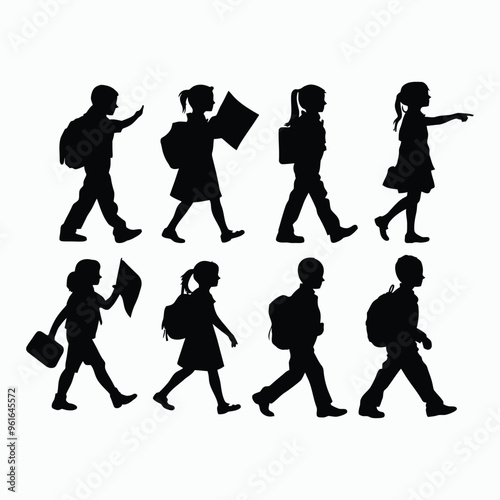 © creativestore, Obraz premium Vector silhouette of school kids back to school illustration template