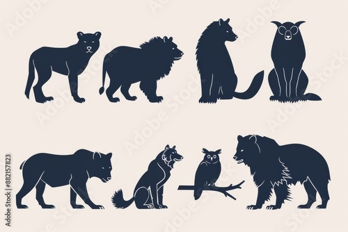 © aidliskndr, Naklejka premium Vector silhouettes of diverse wildlife animals