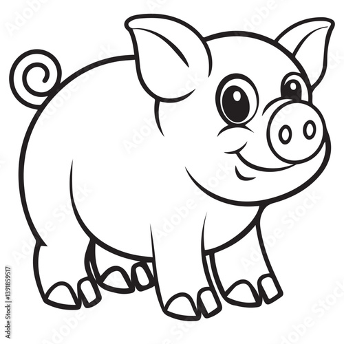 © Andhika, Naklejka premium vector simple character baby pig coloring page pig