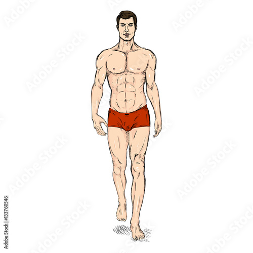 © nikiteev, Fototapeta premium Vector Sketch Fashion Male Model in Underwear